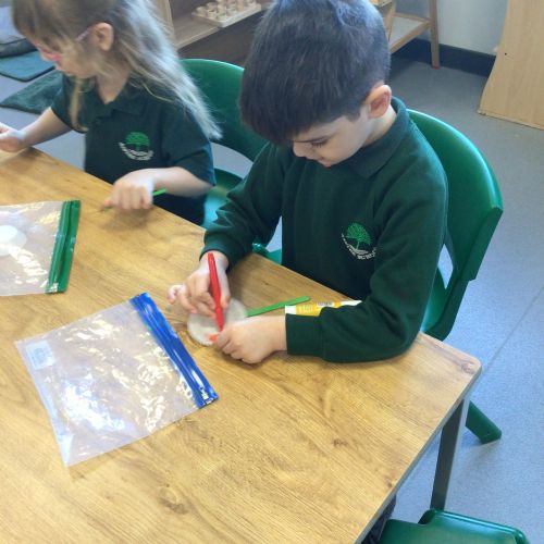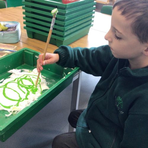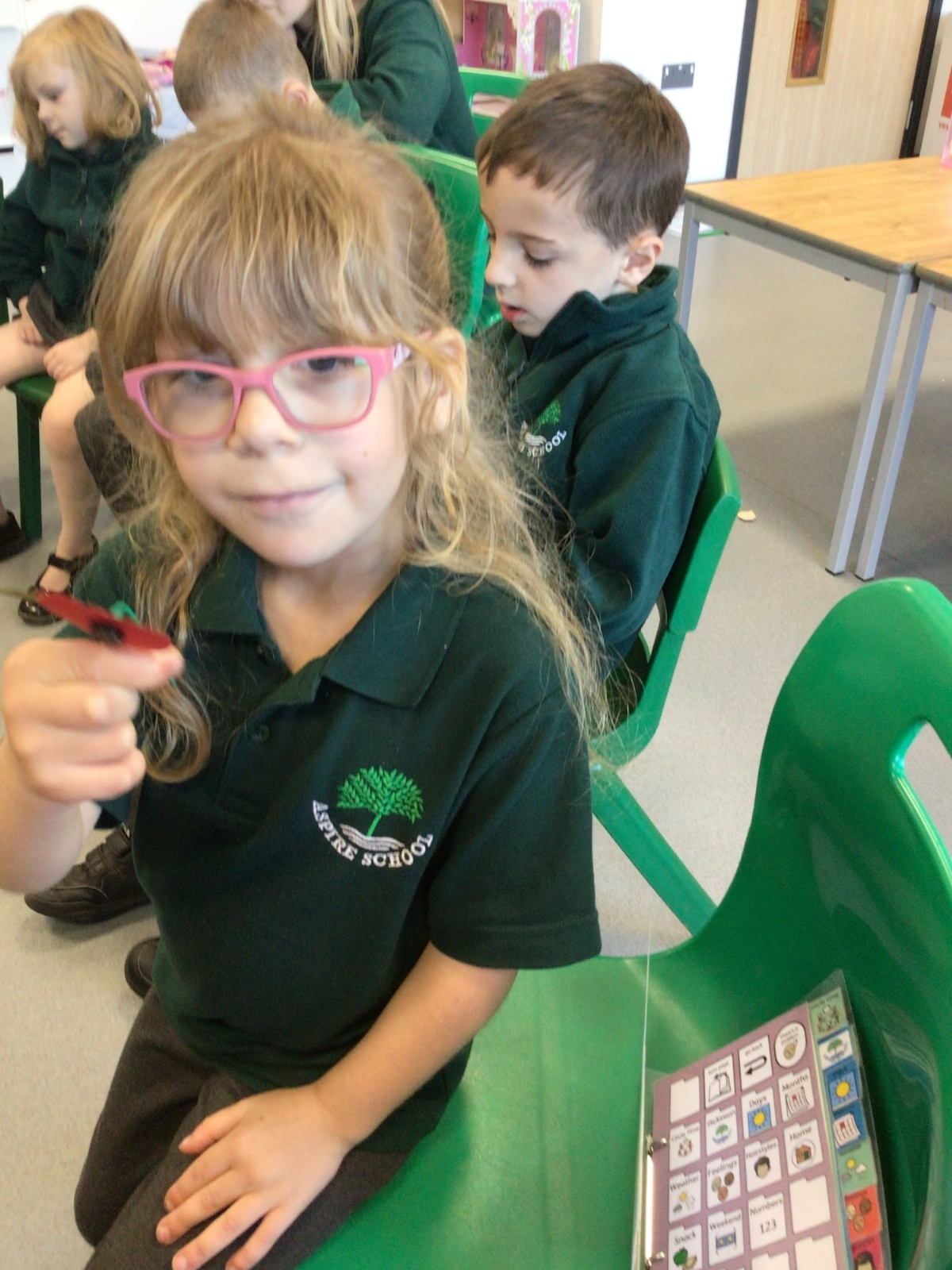 Dickinson Class had a "poppy" themed day to learn about Remembrance Day and why it happens every year. The pupils began the day by watching the Remembrance Rabbit video and talking about how it made them feel. We then had a Remembrance themed Attention Autism, in which the pupils took turns coming to pick poppies from the mud and then made their own poppies. We then explored making our own field of poppies by marbling paper with shaving foam and paint and then choosing between purple or red to print poppies onto the "grass". Finally, we made poppy sun catchers with tissue paper and laminating sheets to finish off our display.